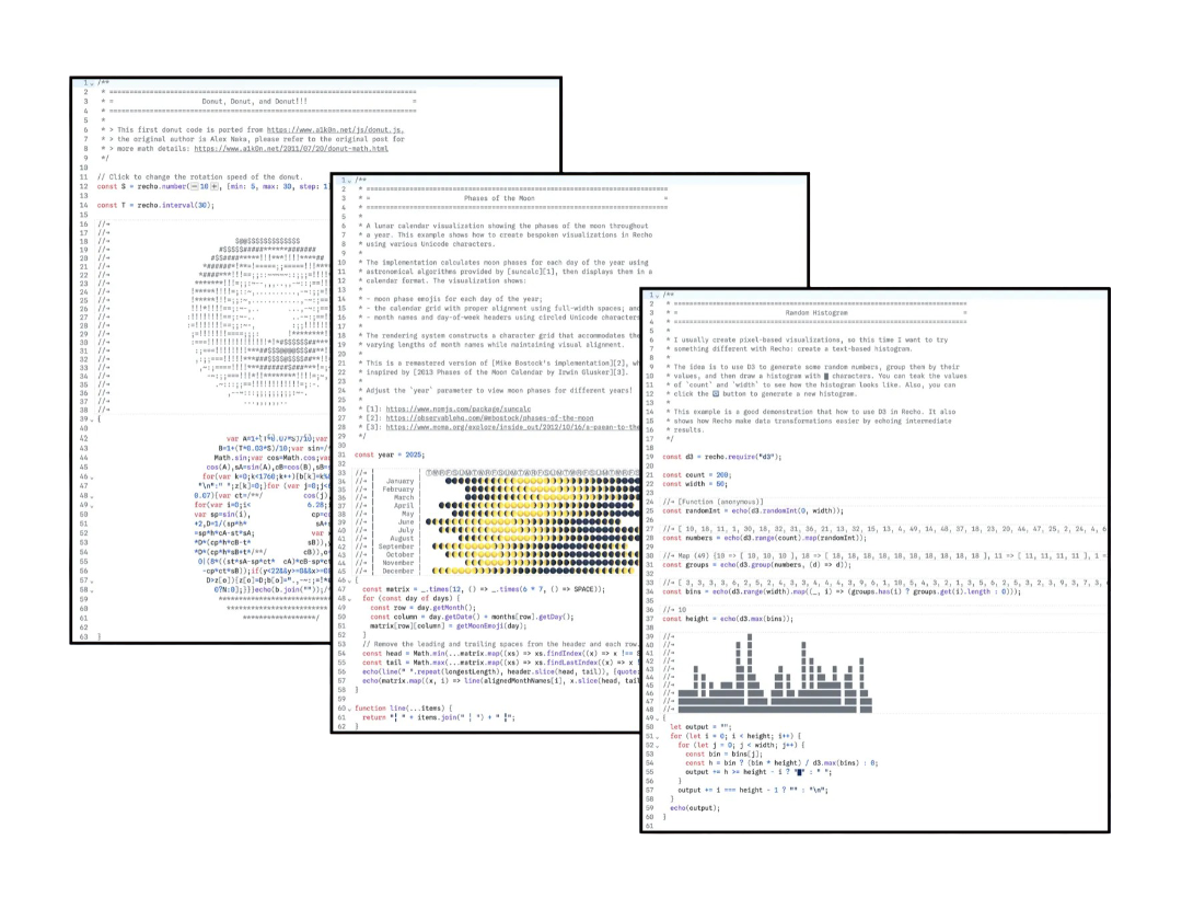 - Recho NotebookA Reactive Editor for Algorithms and ASCII Art